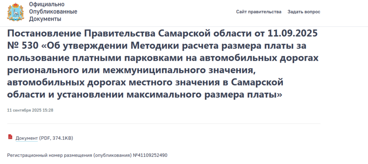Правительство Самарской области утвердило правила установления тарифов на платные паркинги