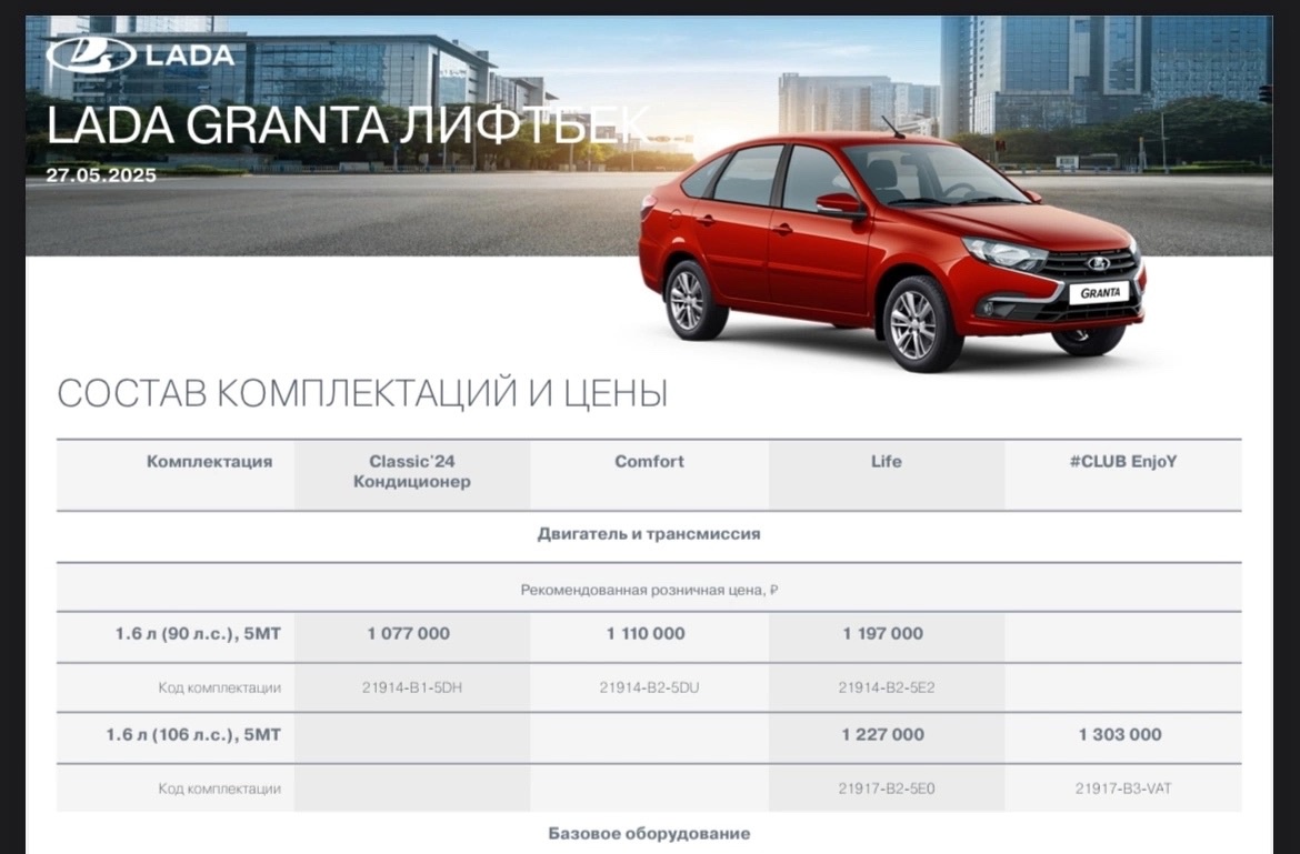 Рассказываем о ценах на самый дешевый новый автомобиль в России, Лада Гранта, на конец мая 2025.