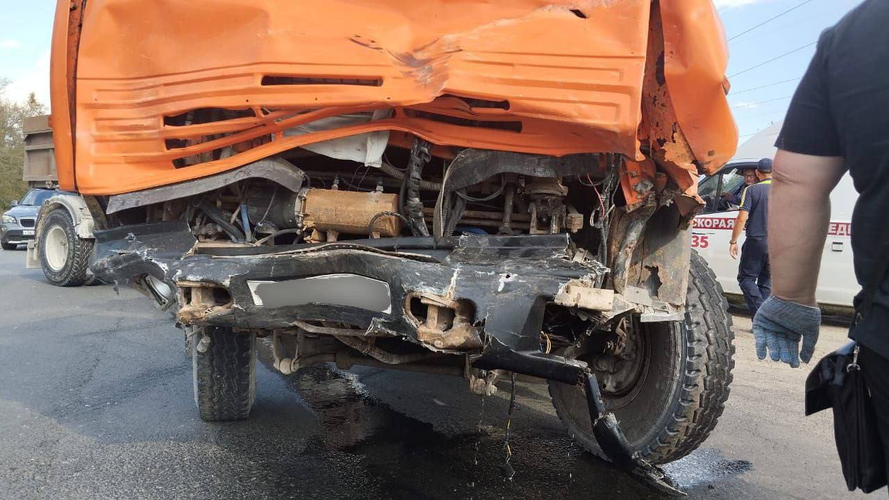 Внедорожник встретился с грузовиком в лобовом столкновении. В результате случившегося есть один погибший. Chevrolet отбросило на обочину, автомобиль перевернулся. У КамАЗа сильно вмят бампер.