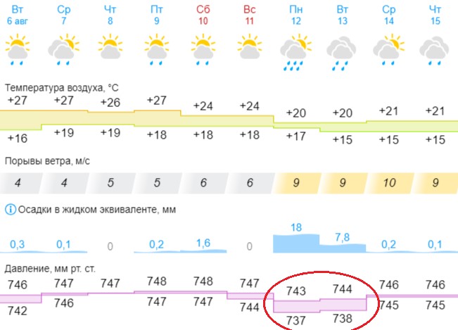 В понедельник, 12 августа 2024 года, атмосферное давление составит 737...743 мм ртутного столба, на следующий день ситуация повторится. Далее последует восстановление до привычных значений, это произойдёт 14 августа, сообщают синоптики.