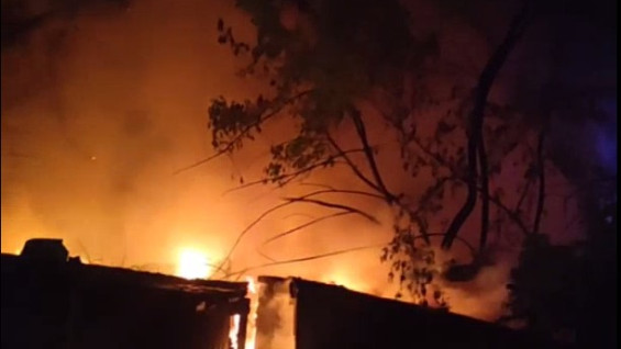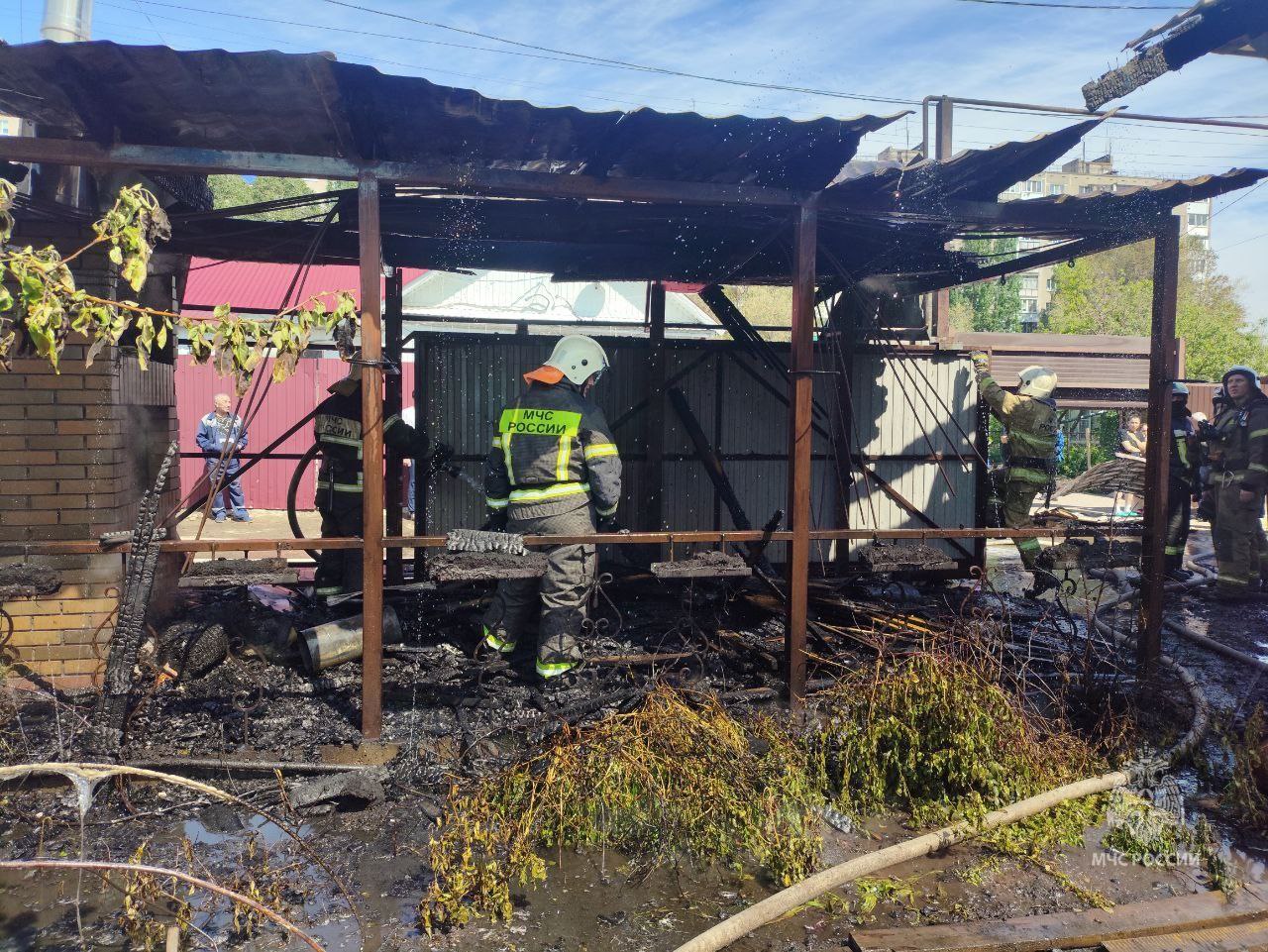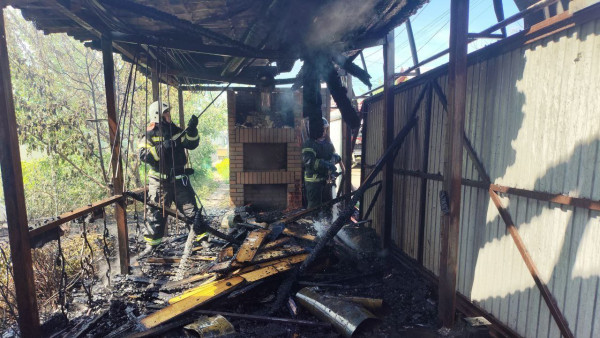 Кровля частного дома и надворные постройки были в огне