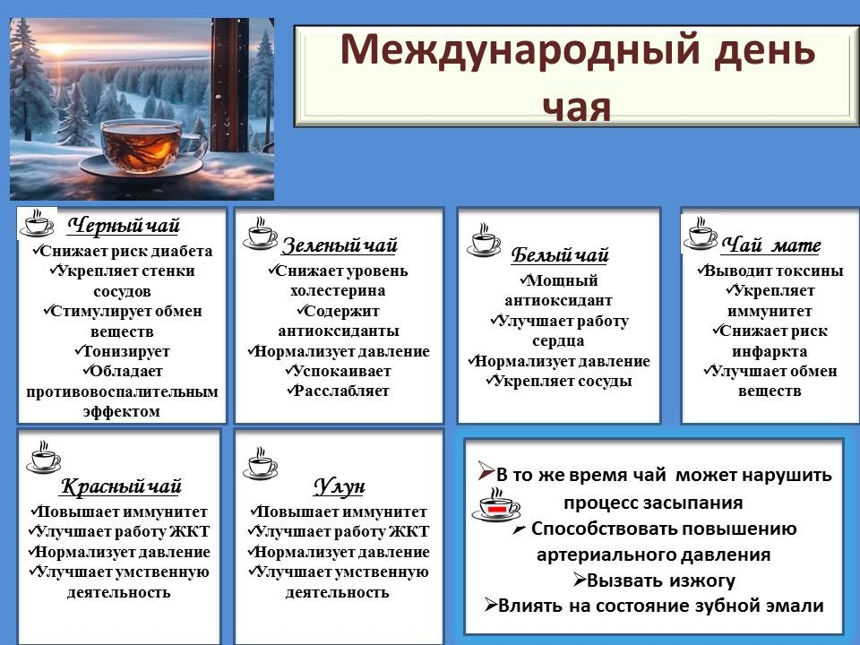 В России 15 декабря неофициально, но широко отмечают Международный день чая. Интересно, что у этого праздника есть и официальная дата от ООН — 21 мая, которая была установлена в 2019 году для поддержки производителей.