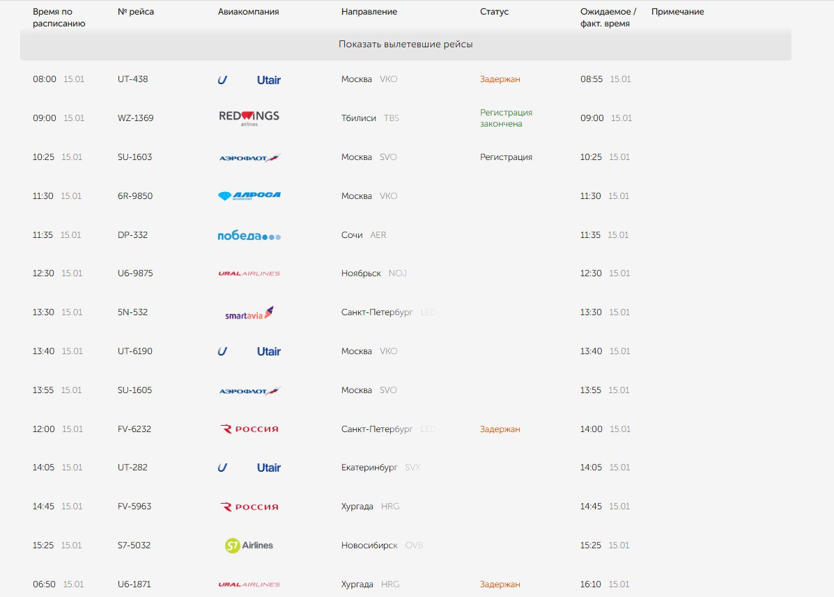 В результате приостановки работы аэропорта были задержаны три рейса: в Москву, Санкт-Петербург и Хургаду. Кроме того, были отменены прилеты рейсов из Красноярска и Норильска.