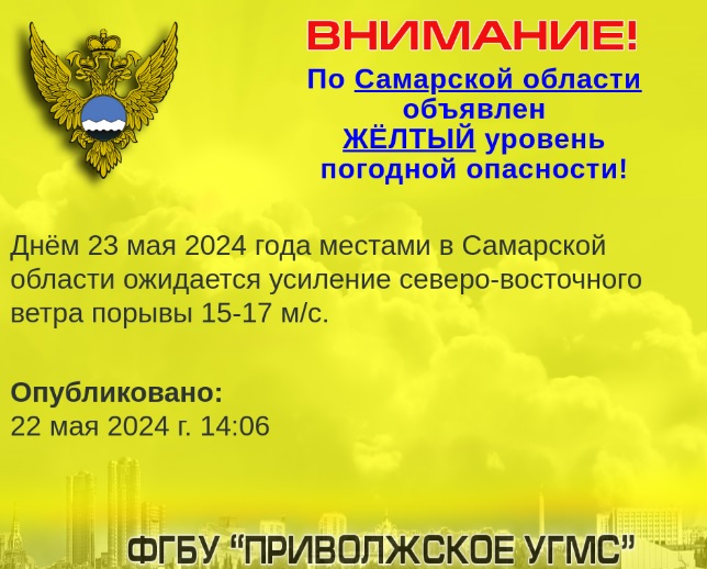 На четверг, 23 мая, объявлена очередная погодная опасность. Как сообщают специалисты Приволжского УГМС и МЧС России, на территории Самарской области будут дуть сильные ветра.