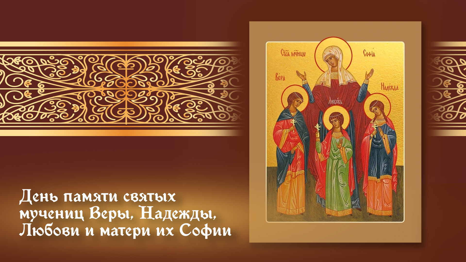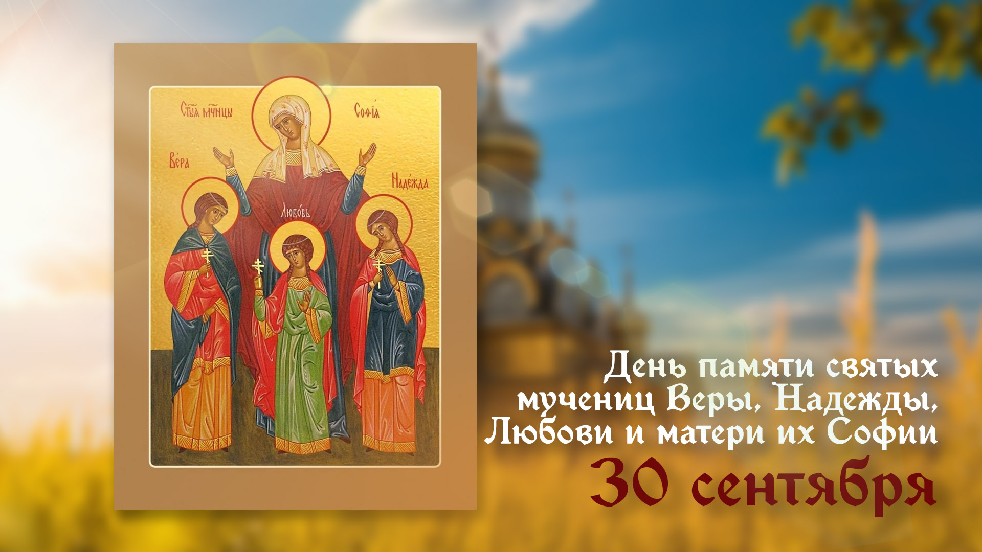 30 сентября православная церковь отмечает День памяти святых мучениц Веры, Надежды, Любови и их матери Софии. Этот праздник посвящён подвигу трёх юных христианок и их матери, ставших символами стойкости веры, материнской любви и духовной мудрости.