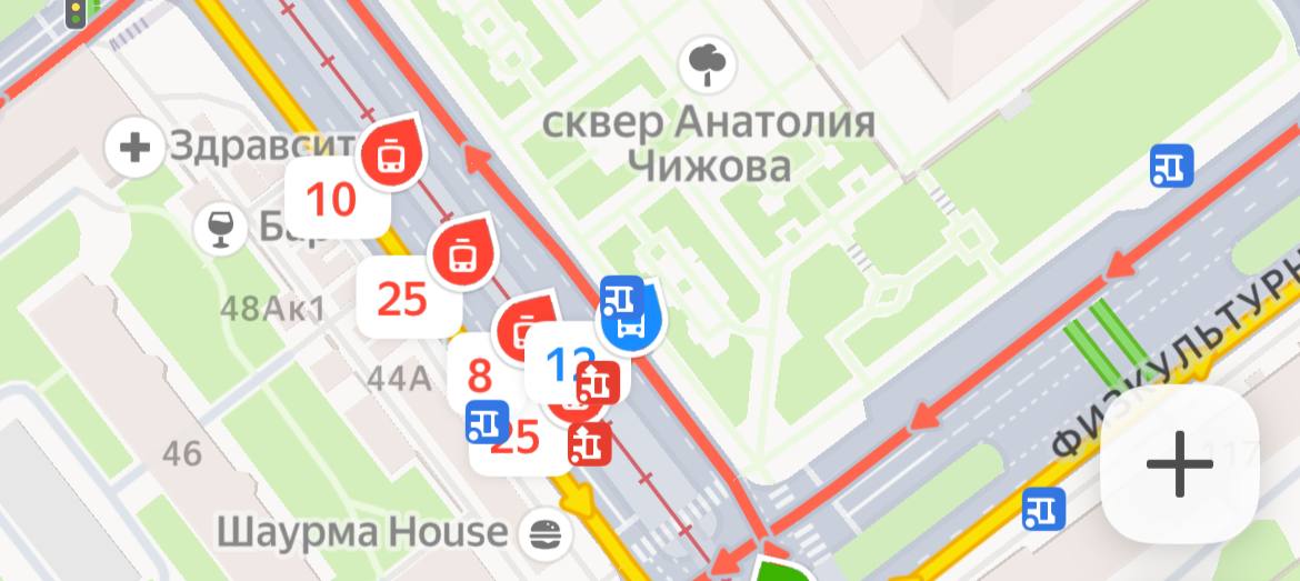 По данным приложения "Яндекс Карты", рядом с Дворцом творчества на проспекте Кирова встало 4 электросостава.