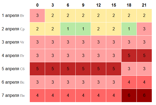К вечеру пятницы магнитная активность начнет снижаться, и до вечера субботы, 6 апреля, геомагнитные колебания будут минимальными — всего 3 балла. Однако уже в воскресенье вечером ситуация ухудшится: геомагнитная обстановка достигнет 4 баллов.