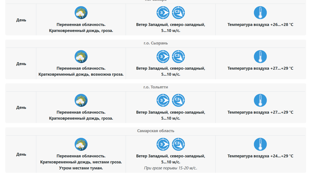 По информации ФГБУ «Приволжское УГМС», до конца дня 7 августа на территории Самарской области сохраняется неблагоприятная погодная обстановка. В регионе ожидаются сильные дожди, местами возможен град. В связи с этим объявлен жёлтый уровень погодной опасности.