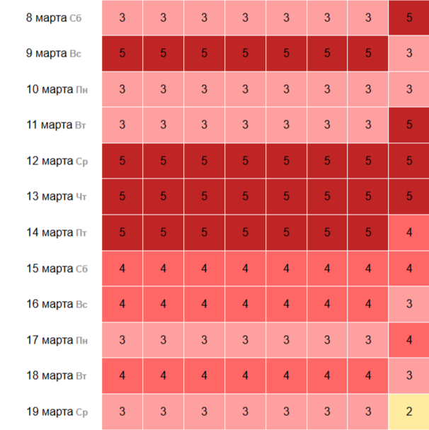 С ночи воскресенья до вечера вторника, 11 марта, магнитное поле немного стабилизируется, и уровень колебаний снизится до 3 баллов. Однако это временное затишье продлится недолго.