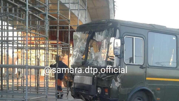 На кадрах видно, что ПАЗ зеленого цвета протаранил строительные леса, по всей видимости, строящейся развязки Фрунзенского моста на улице Утевской в Куйбышевском районе. Автобус получил достаточно серьезные повреждения. Были ли ли пассажиры в салоне в момент аварии и есть ли пострадавшие не сообщается.
