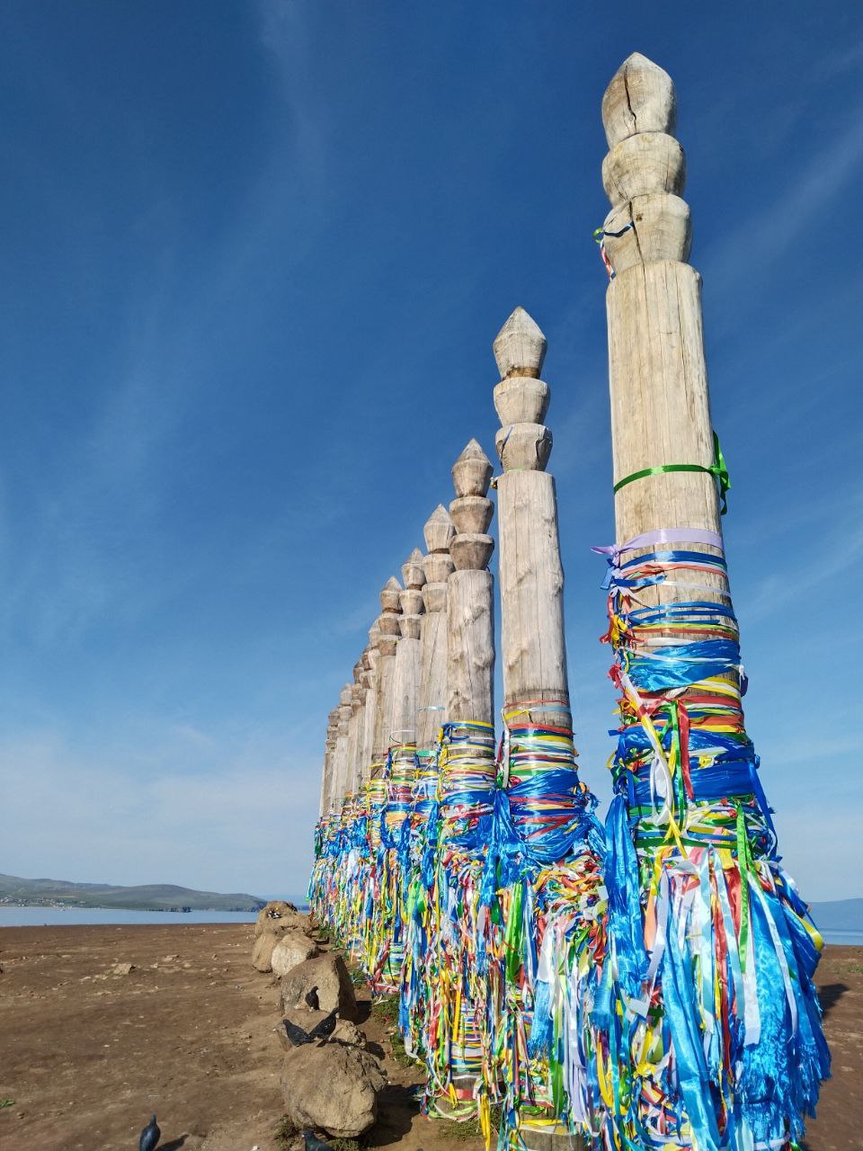 Но едут сюда не за комфортом. Ольхон — место невероятной силы. Весь остров наполнен сакральными объектами. По дороге вы встретите десятки ритуальных столбов «сэргэ». Раньше к ним привязывали коней, теперь они стали священными: путники повязывают на них разноцветные ленточки «залаа», оставляют монетки или угощения, прося у духов Ольхона удачной дороги.
