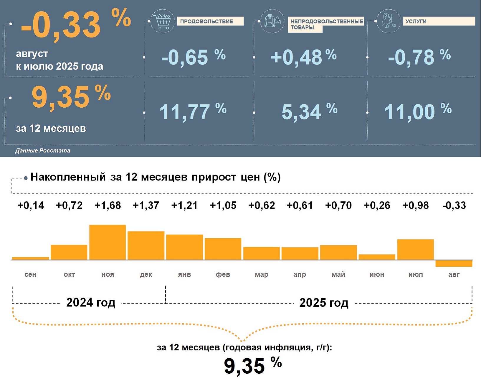Согласно данным, опубликованным Росстатом (приводятся на официальном сайте Банка России), в августе 2025 года потребительские цены в Самарской области продемонстрировали снижение на 0,33% по сравнению с июлем. Эта тенденция, однако, не отменяет общего роста цен за год: годовая инфляция в регионе продолжает замедляться пятый месяц подряд, но в августе все еще составила 9,35%. Стоит отметить, что этот показатель по-прежнему превышает общероссийский уровень инфляции, зафиксированный на отметке 8,14%.