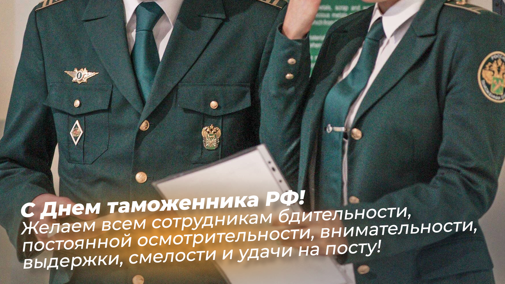- От всей души поздравляем всех таможенников с профессиональным праздником! Ваш вклад в развитие страны и защиту её границ огромен. Желаем вам удачи, карьерного роста и профессионального успеха. Будьте здоровы, счастливы и любимы!