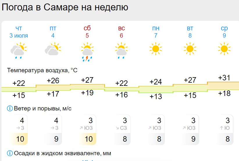 Синоптики озвучили прогноз погоды на выходные в Самарской области