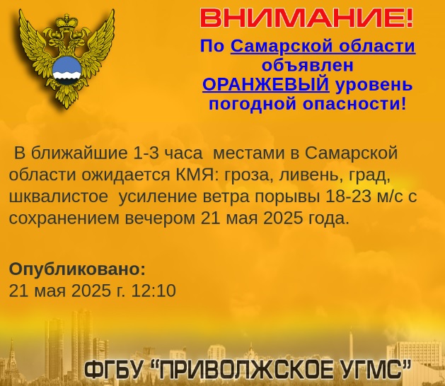 Самарская область рискует вновь оказаться в эпицентре буйства стихий. Приволжский УГМС разослал предупреждения об оранжевом уровне опасности.