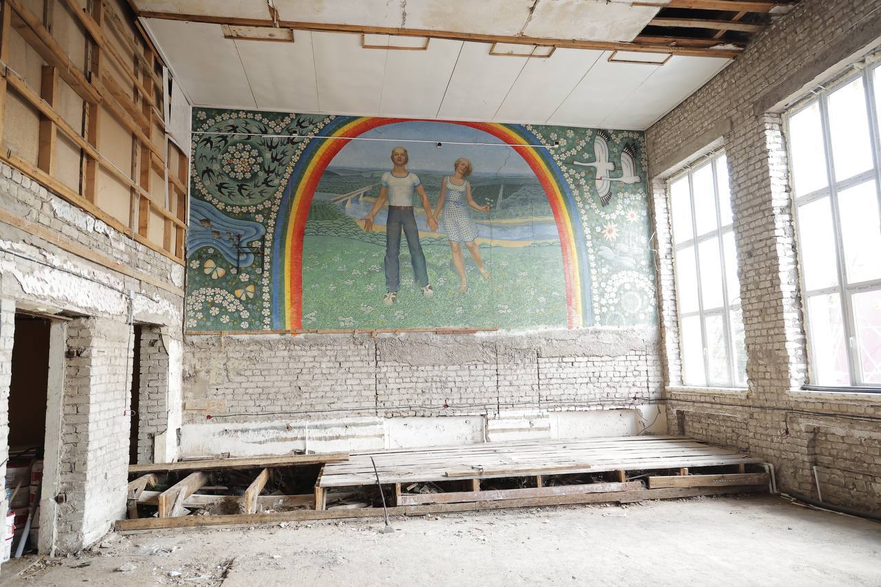 Особое пожелание жителей касалось мозаичного панно в танцевальном зале ДК, созданного в прошлые годы энтузиастами села. На нем изображены узнаваемый пейзаж, мост, журавли и молодежь, которая с уверенностью смотрит в будущее. Губернатор поручил подрядчику обеспечить бережное обновление панно.