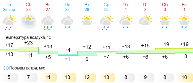 Что касается именно Самарской области, то портал «Гисметео» сообщает, что относительно скоро, а именно уже в это воскресенье, 27 апреля, самарцы почувствуют резкое похолодание. Воздух днем прогреется всего до +13°C. Ожидается пасмурная погода и грозы. Ночью температура составит около 5°C. Но еще прохладнее станет в первый рабочий день. Днем – +4°C, ночью – +1°C. Во вторник прогнозируют самую холодную ночь на неделе, температура воздуха дойдет до 0°C. Но зато в этот день впервые за последний период выйдет солнце – синоптики обещают малооблачную погоду.