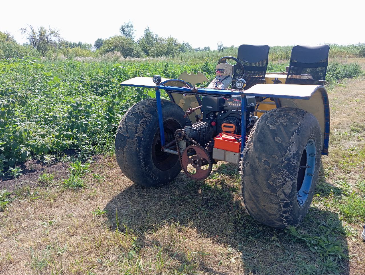 "Мысль инженерная такая - построить компактную, легкую и юркую машину, которая могла бы разворачиваться на месте и при этом перевозить раненых солдат. Большие шины для проходимости: ездить по грязи, по неровностям, - поясняет изобретатель.
