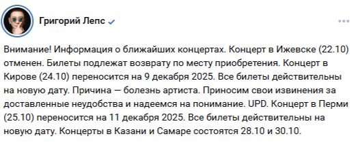Под угрозой оказалось и самарское выступление, что традиционно должно будет пройти в стенах МТЛ Арены. На данный момент нет официального подтверждения отмены концерта в Самаре, а билеты все еще можно приобрести на официальных сервисах.