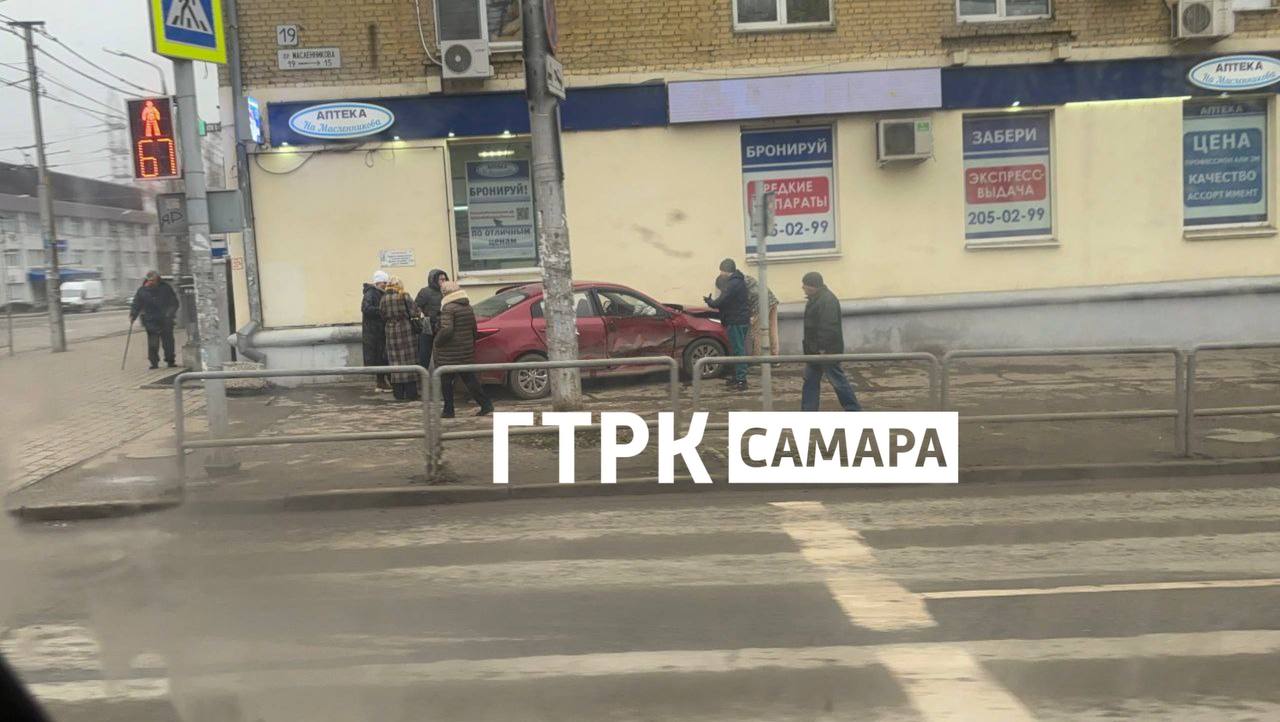 Красная иномарка влетела в здание: фото ДТП в центре Самары 7 декабря