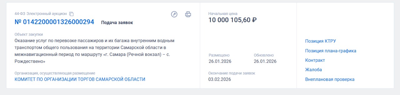 В межнавигационный период, с 21 февраля по 31 марта 2026 года, планируется организовать ежедневные рейсы, и максимальная цена контракта составляет 10 миллионов рублей. Об этом сообщается на сайте госзакупок.