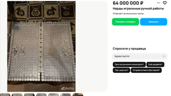На Авито продают нарды ручной работы из монет за 64 миллиона рублей