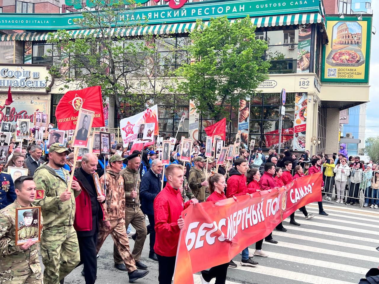 В этот раз в Параде Победы после двухлетнего перерыва принял участие Бессмертный полк. Портреты своих родных и близких пронесли более 10 тысяч жителей Самарского региона. Среди них участники СВО, а также первые лица области и города.