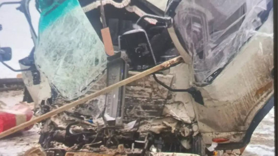 В другом недавнем ДТП с участием КАМАЗа один из большегрузов всмятку разбил кабину.
