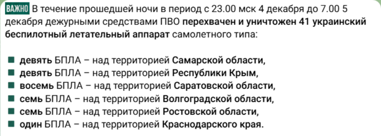 В ночь на пятницу, 5 декабря, в 00:47 в Самарской области объявили об опасности атаки беспилотников. МЧС России предупредило местных жителей о необходимости быть внимательными.