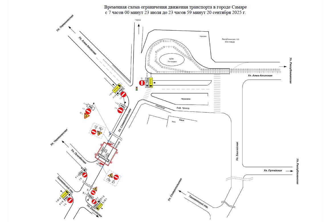 Временная схема ограничения движения транспорта в Самаре.