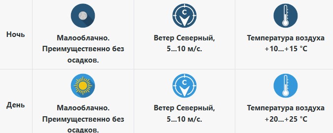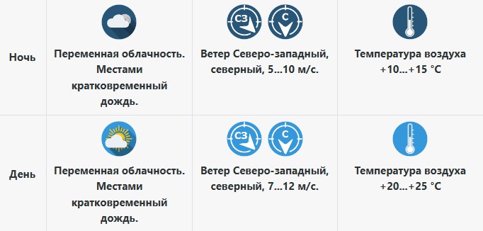 В воскресенье, 7 сентября, температура воздуха будет такой же, как и накануне: +20...+25 °C. Северный ветер милостиво не будет разгоняться – порывы не будут быстрее, чем 5...10 м/с.