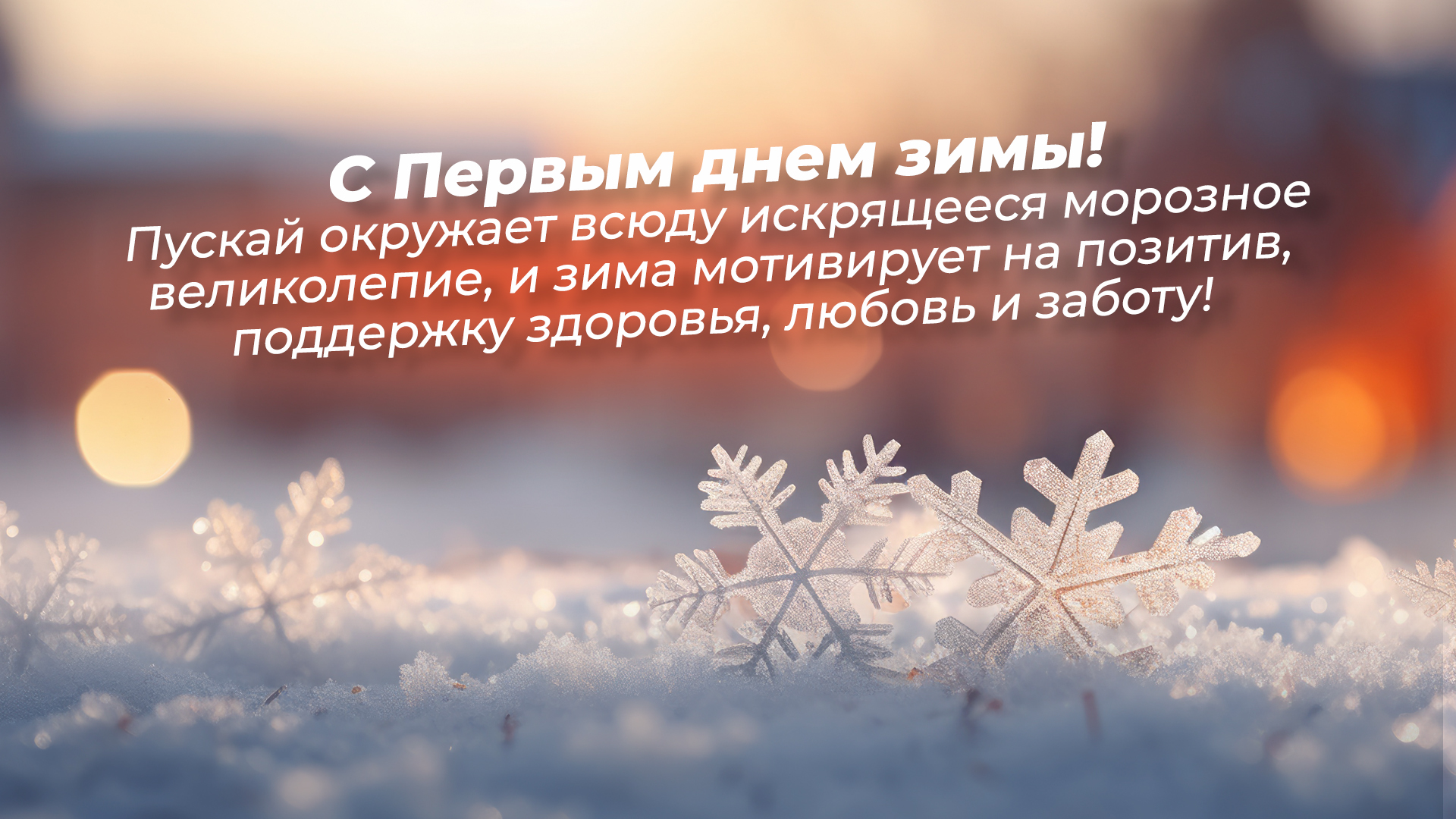 - Поздравляю с первым днем зимы! Желаю свежих эмоций, сказочного настроения, восхищения, радости, уюта, тепла, трогательных моментов и ощущения приближающегося чуда! Будьте ближе к любимым, дарите любовь и наслаждайтесь общением в приятной компании!