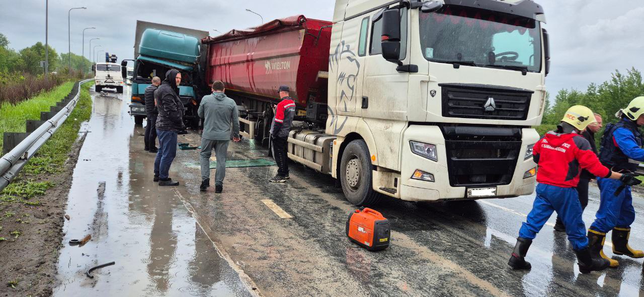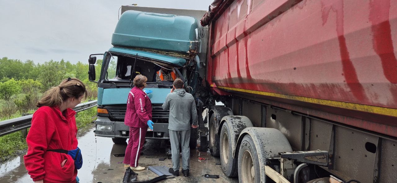 В аварии пострадал водитель фуры Mercedes. Устранение последствий дорожно-транспортного происшествия осуществлялось при координированном взаимодействии с дорожной полицией и бригадой скорой помощи.