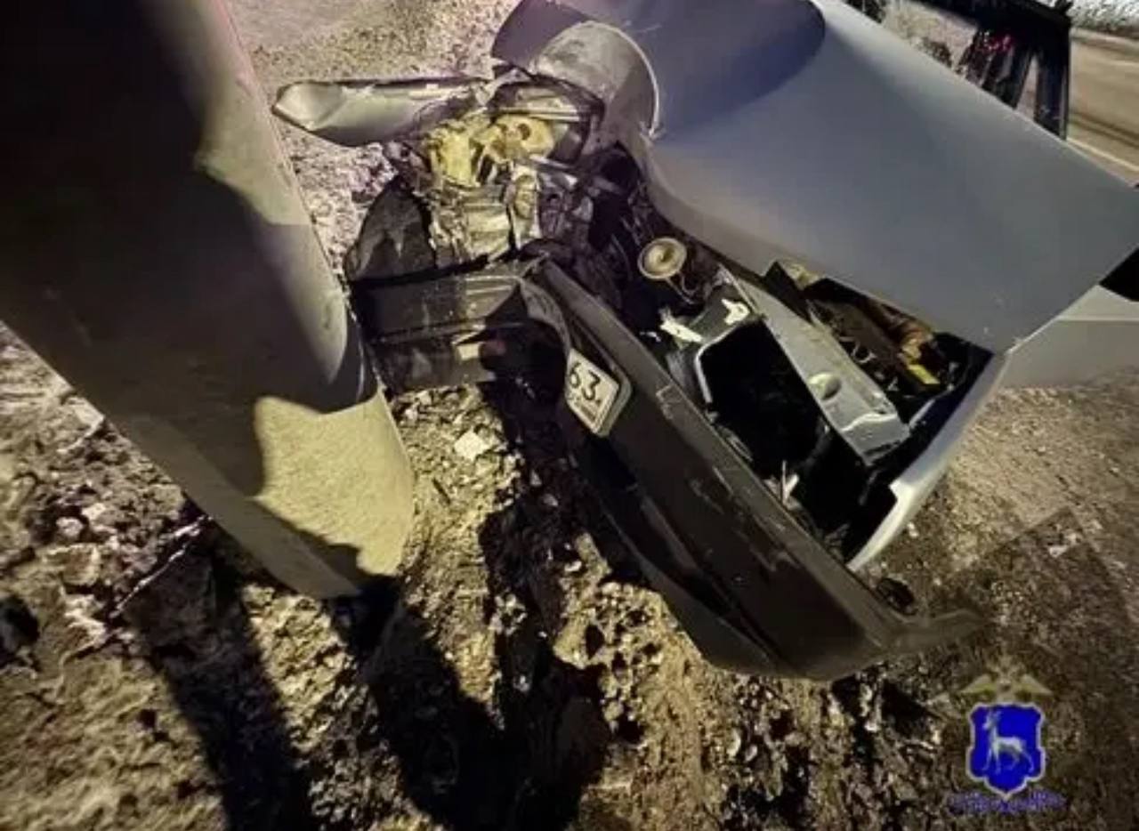 Под Самарой 32-летний водитель ВАЗ съехал в сугроб и врезался в столб