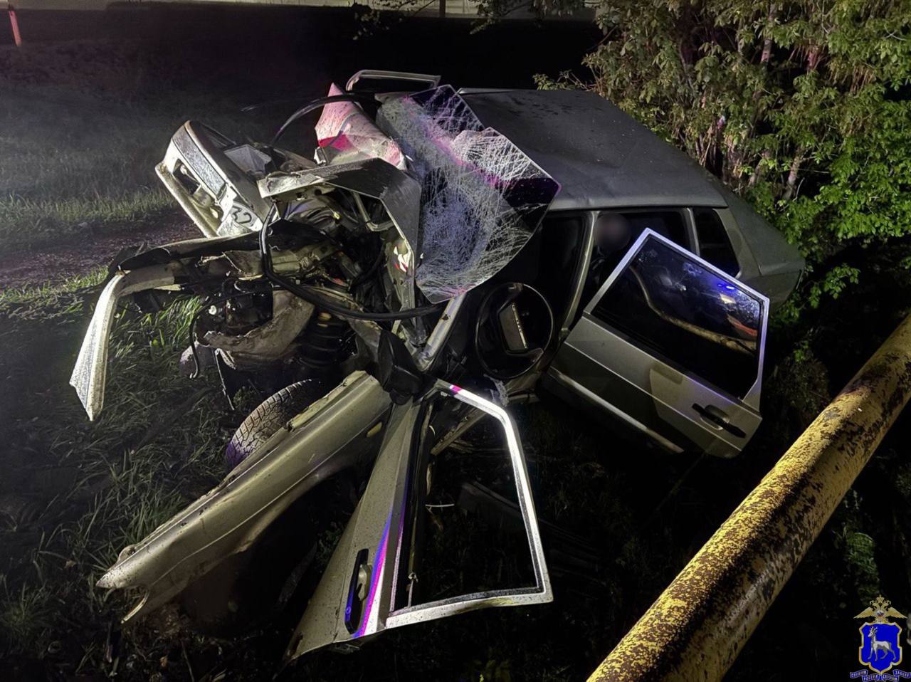 Страшное ДТП произошло в Красноярском районе Самарской области. После столкновения с ограждением от автомобиля ВАЗ 21150 осталась груда металла.
