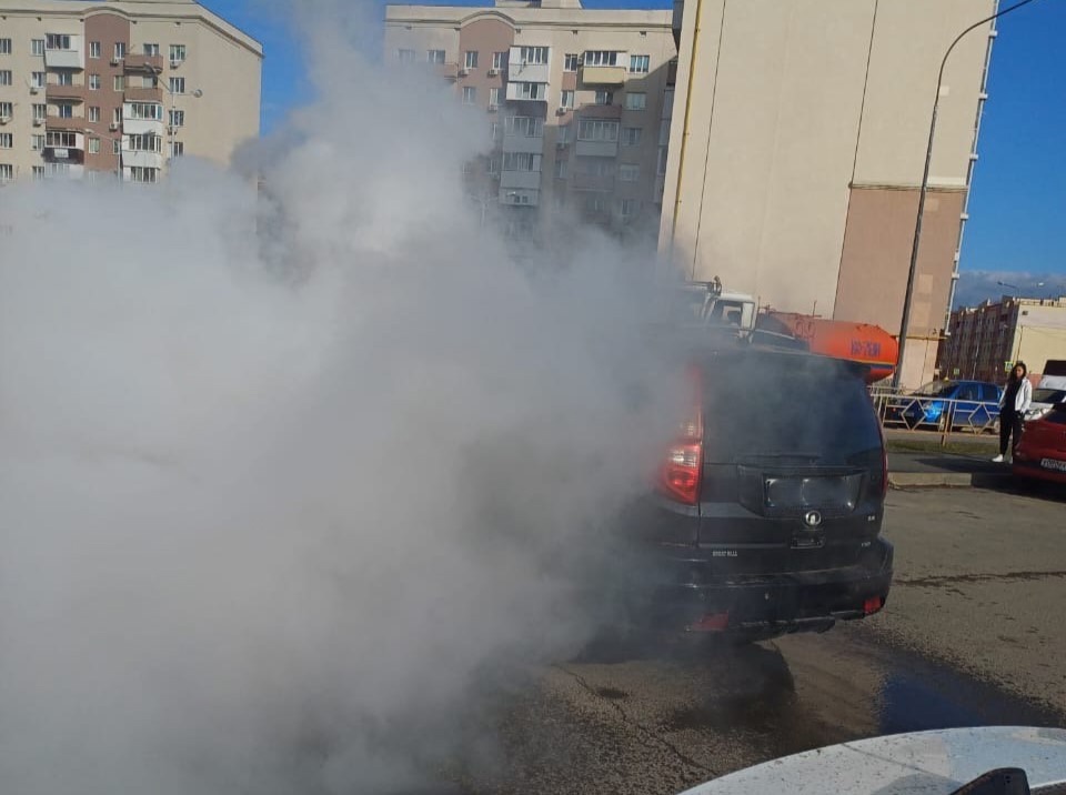 Инцидент произошел утром, 14 апреля. В Южном городе загорелся легковой автомобиль HOVER.