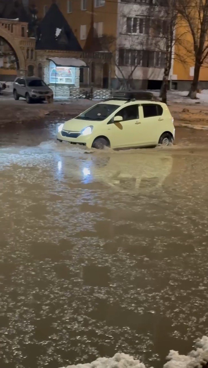 Мобильный репортер ГТРК «Самара» оказался на месте коммунального ЧП и зафиксировал как минимум два бьющих из-под земли источника. Под слоем воды, видимо, находятся канализационные колодцы и магистральная труба ХВС.