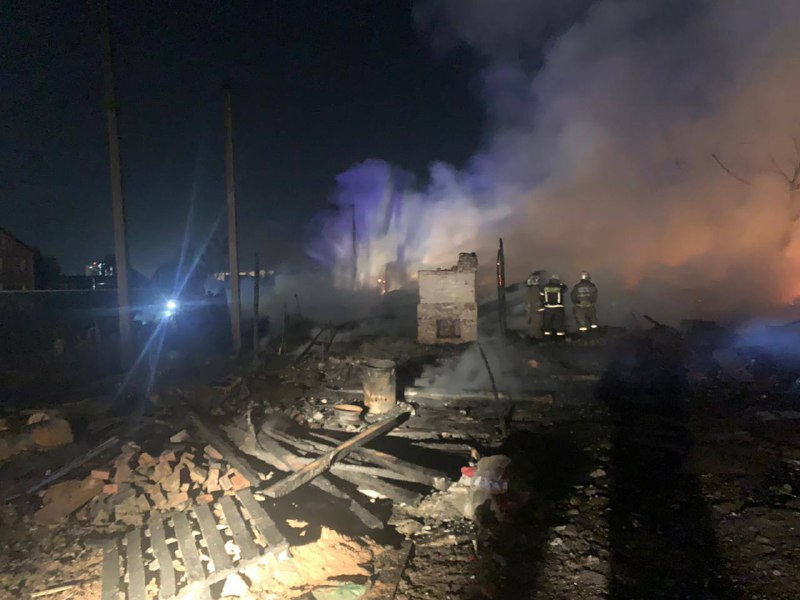 В 02:47 пожар был потушен. Горели шесть "самостроев" на площади 1000 квадратных метров, сообщили в МЧС. На месте работали 84 специалиста и 25 единиц техники.