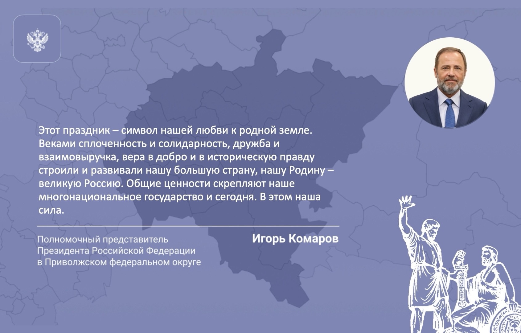 Поздравление полномочного представителя президента России в Приволжском федеральном округе Игоря Комарова с Днем народного единства.