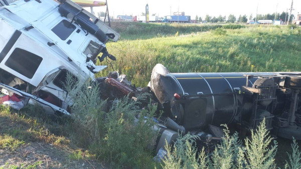 Выяснилось, что ранним субботним утром дорогу не поделили два большегруза Volvo и Fani. Одна из фур вылетела в кювет с последующим опрокидыванием. Водитель погиб.