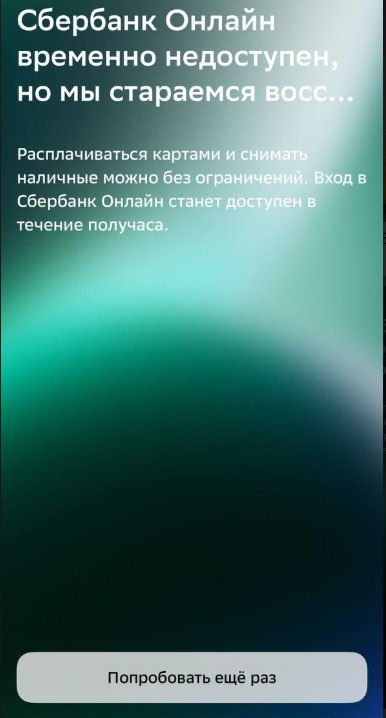 Мобильное приложение «Сбера» перестало запускаться, оставив пользователей без возможности оплатить покупки онлайн, перевести деньги или проверить счёт.