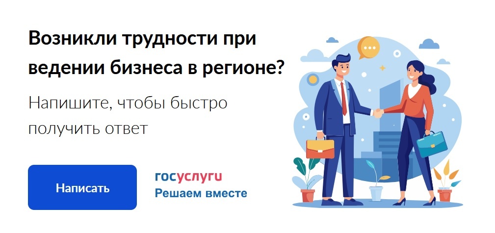 Для того чтобы направить обращение, достаточно зайти на официальный сайт регионального правительства, министерства, муниципалитета или организации инфраструктуры развития бизнеса (центр «Мой бизнес», Агентство по привлечению инвестиций и др.), кликнуть на баннер «Вопросы по ведению бизнеса», авторизоваться через личный кабинет на Госуслугах организации.