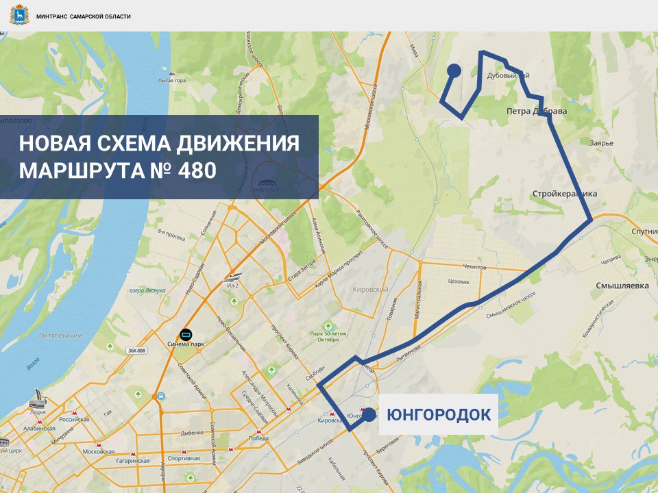 С 16 мая 2025 года изменится схема движения маршрута № 480, следующего из поселка городского типа Смышляевка до пригородного автовокзала города Самары.