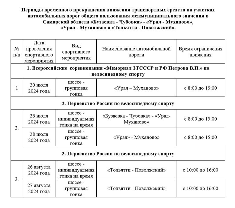 C 20 июля по 27 августа 2024 года в целях обеспечения безопасности дорожного движения временно прекращено движение транспортных средств на дорогах регионального значения: «Урал – Муханово», «Бузаевка – Чубовка» - «Урал – Муханово» и «Тольятти – Приволжский»