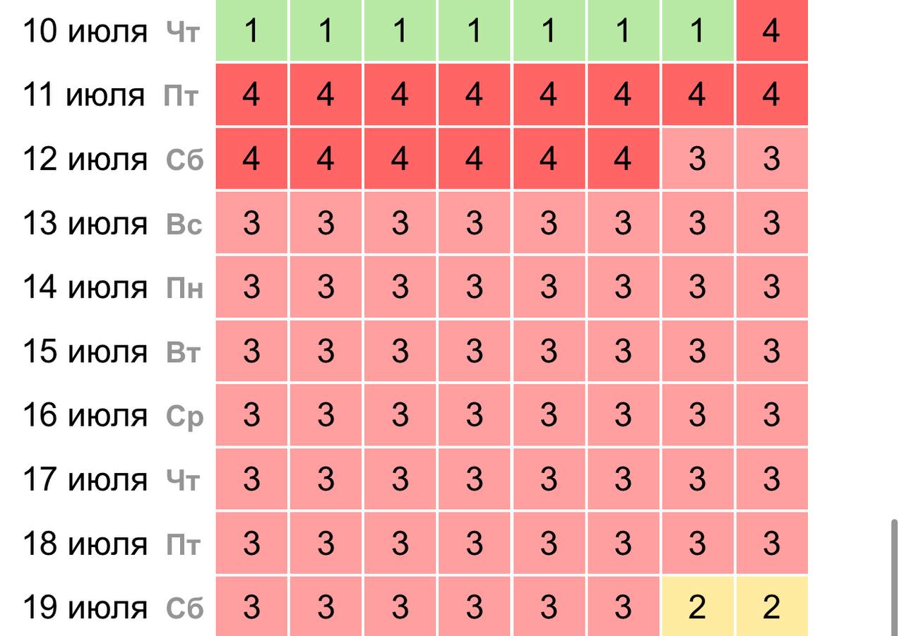 Уже вечером 10 июля геомагнитные бури достигнут отметку 4 балла. Такая обстановка продлится до второй половины дня 12 июля.