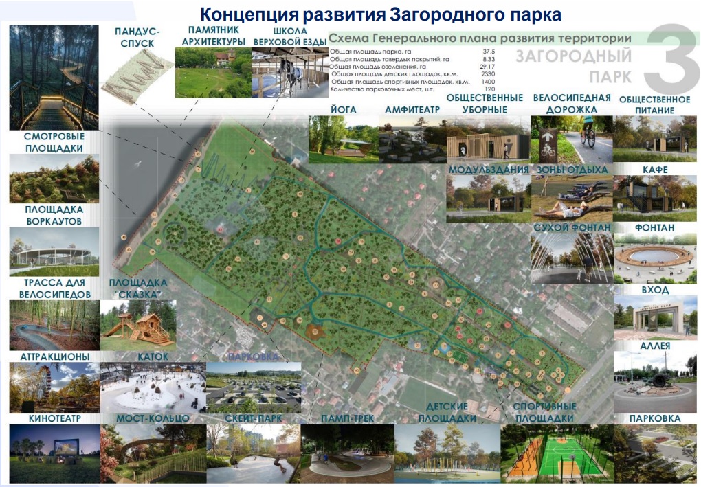 Общая площадь Загородного парка составляет 375 315 квадратных метров. Сейчас там располагаются 20 сторонних организаций, среди которых 8 с правом собственности на земельный участок. Поэтому властям придётся вести переговоры с владельцами частных объектов, чтобы осуществить задуманную концепцию.