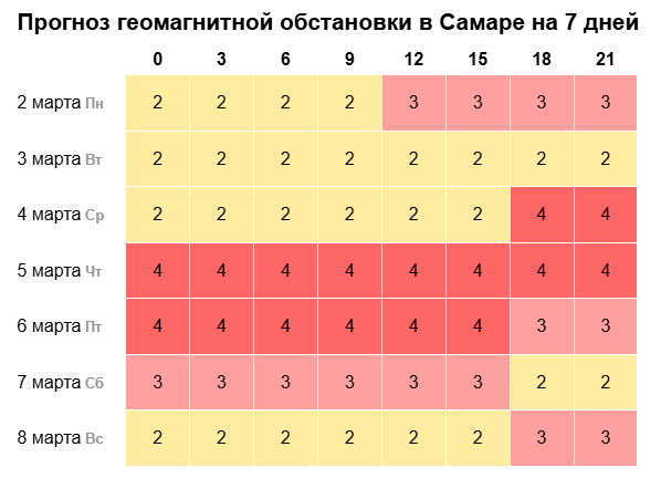 Первая рабочая неделя весны в Самарской области обещает быть непростой для метеочувствительных людей. С 4 по 7 марта ожидается затяжное геомагнитное возмущение, которое затронет самочувствие многих горожан.