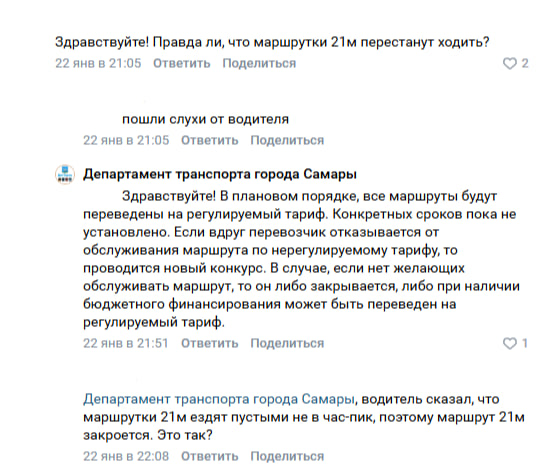 Поводом для обсуждения стали комментарии в социальной сети «ВКонтакте», где горожане поделились информацией, полученной от водителей. 22 января департамент транспорта Самары пролил свет на планы развития городской маршрутной сети.