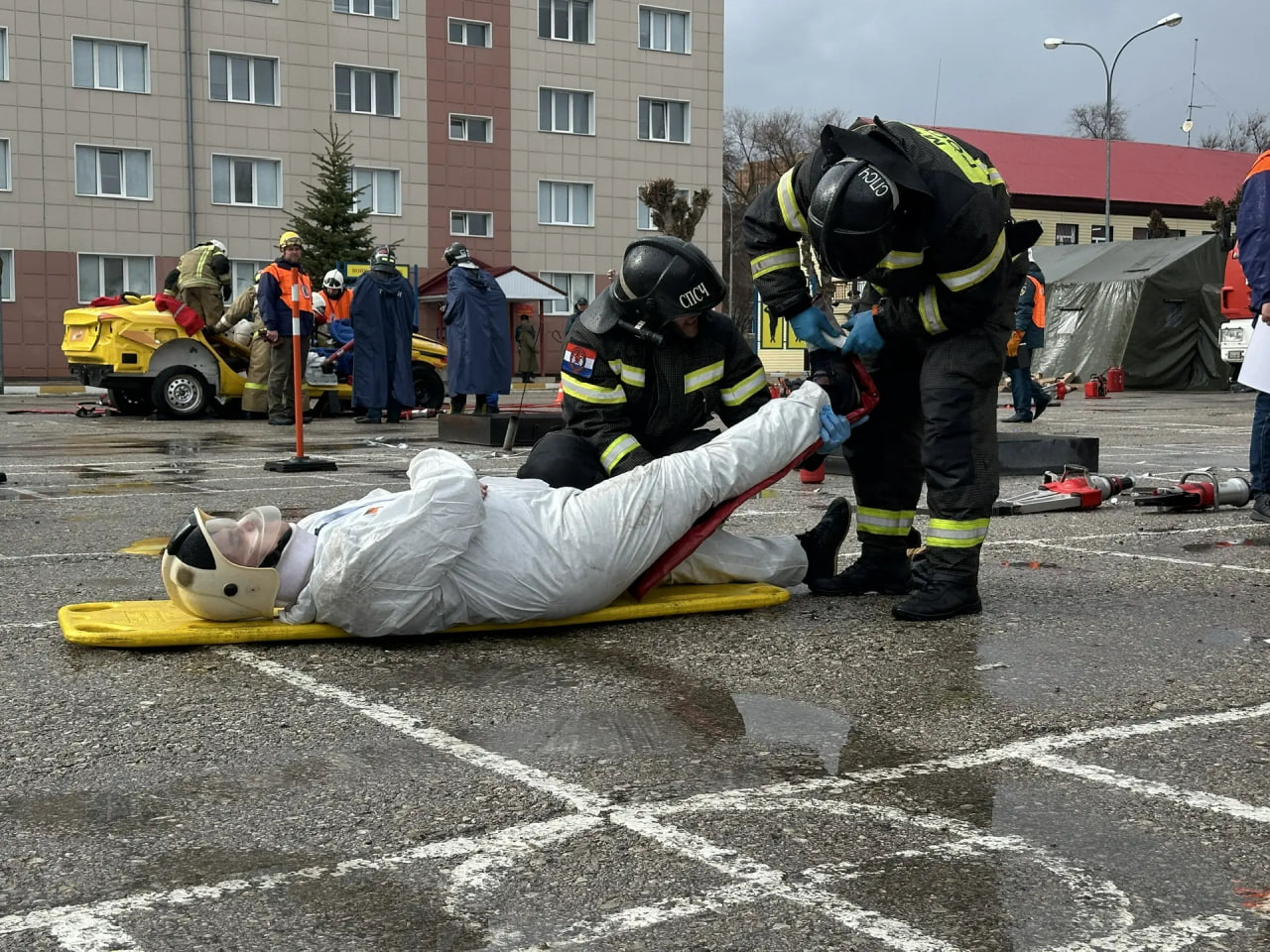 Участники соревнований успешно выполнили полный комплекс задач, максимально приближенных к реальной чрезвычайной ситуации. Спасатели оперативно развернули службы на месте условной аварии, провели деблокирование пострадавших из повреждённых автомобилей, оказали первую помощь и эвакуировали людей в безопасную зону. Одним из самых зрелищных этапов стало тушение горящего автомобиля, где команды показали не только профессиональные навыки, но и умение действовать в условиях ограниченного времени. Основная цель мероприятия — отработка навыков помощи пострадавшим в ДТП, обмен ценным опытом и популяризация эффективных методов спасения.