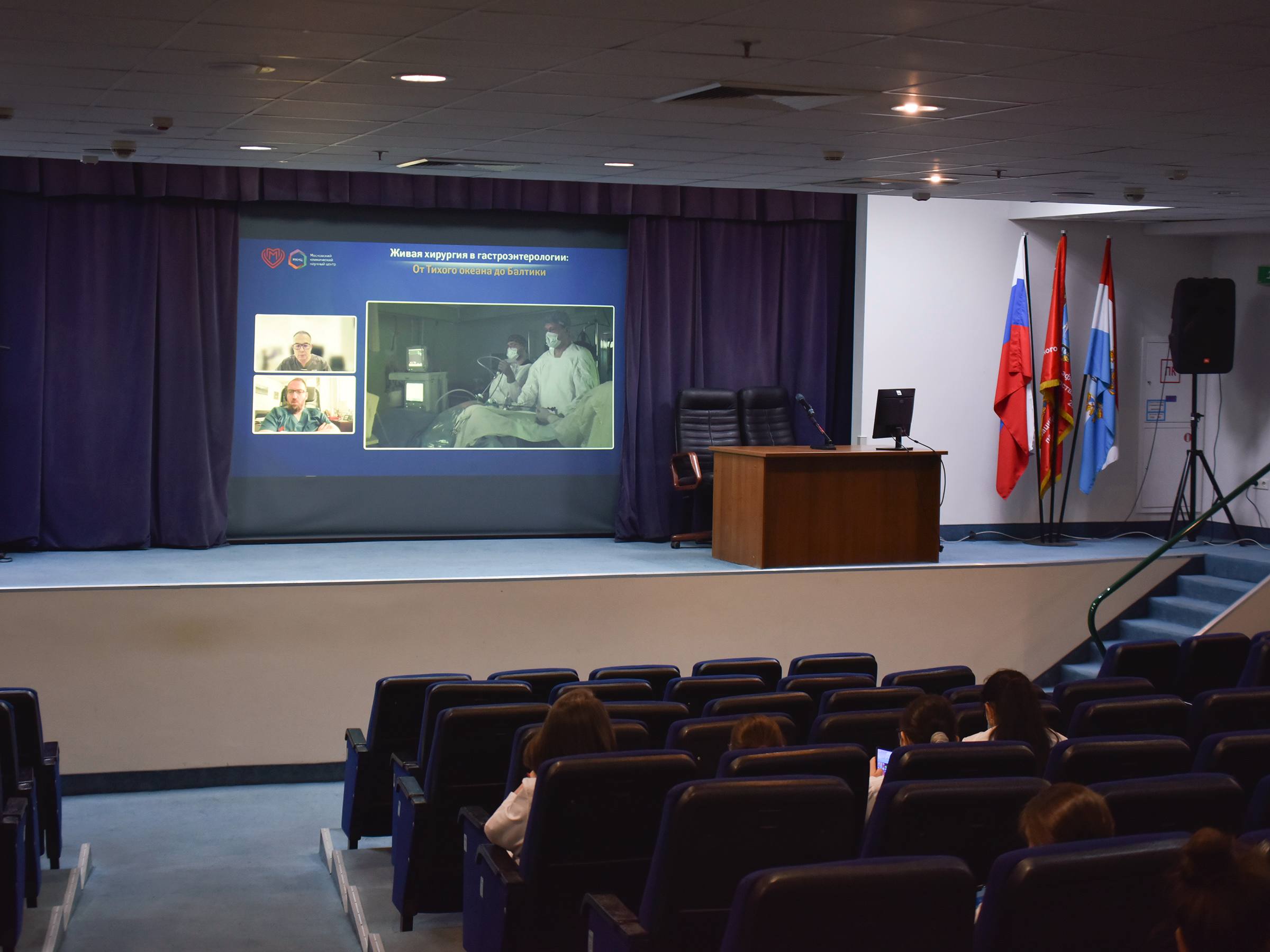 Команда хирургов онкодиспансера под руководством заведующего отделением абдоминальной онкологии №1 Сергея Фролова показала коллегам лапароскопическую правостороннюю гемиколэктомию.